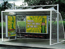 Actual size goal posts were placed in bus shelters around Sao Paulo for the Soccer World Cup